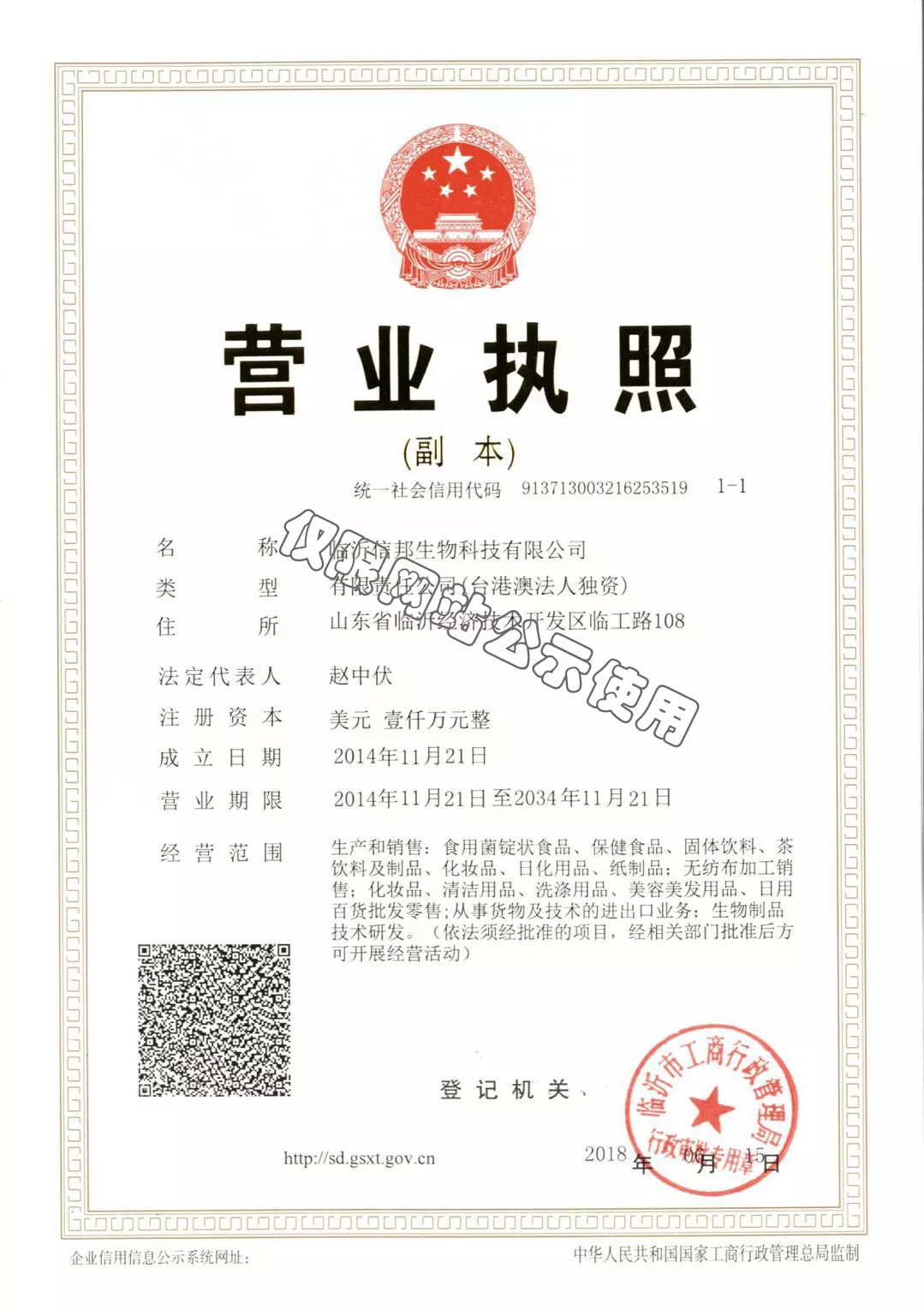 臨沂信邦生物科技有限公司食用菌產品生產原料嚴格把關,產品已通過美國FDA注冊,注冊號:18000677550,具有出口美國市場的資格。